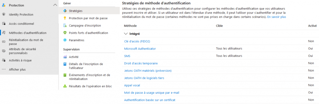 Stratégies de méthode d’authentification 1- Se connecter au Centre d’administration Microsoft Entra Se connecter 2- Configurer les stratégies MFA Protection > Méthodes d’authentification > Stratégies